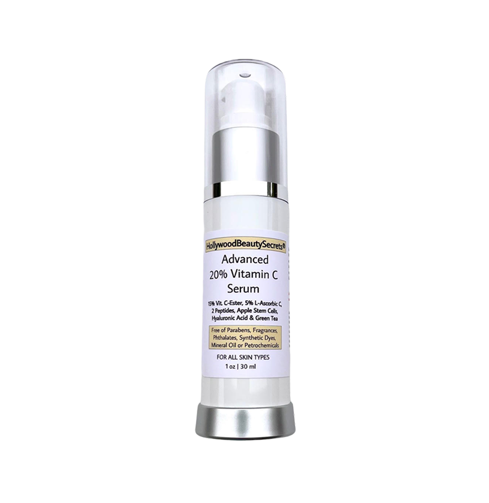 Our popular Advanced Vitamin C Serum (20%) is formulated with two types of skin brightening Vitamin C; 15% C- Ester which is fat soluble and stays within the skin and  5% L-Ascorbic Acid which is water-soluble, plus this serum includes powerful skin-smoothing Apple Stem Cells, Matrixyl 3000® Peptides, premium Hyaluronic Acid for plumper, hydrated skin, and antioxidant Green Tea Extract. This highly concentrated professional formula is perfect for all skin types and ages. BTW: Our formulation rivals a “medical” skincare brand that retails for $185 and theirs does not include stem cells, peptides and two kinds of Vitamin C like this one.